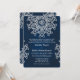 Une belle invitation de mariage de ton bijou SAPPHIRE ET NAVY BLEU FONCÉ et faux argent avec un motif de médaillon sari ornemental exotique inspiré de l'Inde avec un design floral et coup de soleil lotus. Cette invitation de mariage élégante et belle de style indien moderne est parfaite pour toute occasion officielle avec un thème de nuits arabes, marocain, Aladin ou est-asiatique indonésien. Conçu par Chrissy H. Studios, LLC. Tous droits réservés.
