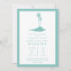 Une faire-part de mariage simple et moderne avec une illustration turquoise d'une île avec deux palmiers. La bordure, le texte personnalisé et le côté opposé sont également turquoises.