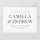 Une invitation de mariage moderne noir et blanc élégante. Type simple et élégant sur le devant avec photo sur le dos. Cliquez sur Modifier pour customiser cette conception.