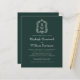 Cette élégante conception de faire-part de mariage d'inspiration vintage comprend une paire d'initiales en monogramme blanc en police serif ouverte au-dessus et au-dessous d'une ligne de séparation et entourée d'une ligne d'art acanthus crête sur un arrière - plan vert de forêt foncée. Le dos de la carte est vert forêt solide.