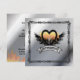 Passionnée d'amour et de moto ? Êtes-vous une motarde qui planifie son mariage de motard ultime, CHAUD et unique avec votre homme ? Cette invitation de mariage de motard Rock N Roll Cœur Flammes super cool est la réponse ! Elle éblouira tous vos invités et c'est un souvenir parfait pour votre grand jour en tant que mariée motarde ! Roulez sur la route ouverte avec une invitation de mariage de motard rock and roll cool qui reflète votre amour en tant que couple pour votre(s) moto(s). Un cœur contourné graphique est accentué par des flammes et des ailes cool sur un fond de rafale de métal argenté riche avec une bordure supérieure et inférieure de fils. Disponible avec des produits assortis.