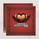 Êtes-vous une fille motarde planifiant votre mariage de motard ultime, CHAUD et unique avec votre homme? Cette invitation de mariage de motard Rock N Roll Flames Heart super cool est la réponse! Elle éblouira tous vos invités et c'est un souvenir parfait pour votre grand jour en tant que mariée motarde! Roulez sur la route ouverte avec une invitation de mariage de motard rock and roll cool qui reflète votre amour en tant que couple pour votre moto(s). Un cœur contourné graphique est accentué par des flammes et des ailes cool sur un fond riche en éclats rouges avec une bordure supérieure et inférieure de fils. Disponible avec des produits assortis.