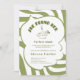 Célébrez la future mariée avec cette invitation personnalisable de thé matcha pour une baby shower ou une fête de mariage ! Ce modèle éditable présente une charmante tasse de matcha, des lignes ondulées et une typographie élégante vintage. Parfait pour les mariées amatrices de thé, cette carte de fête de mariage verte est entièrement personnalisée avec le nom de la mariée, la date, l'heure, le lieu et les détails de RSVP.