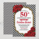 Conçu avec une rose rouge et un cadre à paillettes dorées. Les rayures noires et blanches ajoutent une touche de chic moderne.