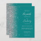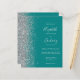 Le bord gauche de cette élégante faire-part de mariage moderne est orné d'une bordure en faux parties scintillant argenté. Le texte personnalisable combine écriture gris argenté pâle, copperplate et polices italiques sur un arrière - plan bleu turquoise. L'envers présente un design turquoise et argenté assorti.