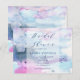 Invitez famille et amis à votre fête de mariage avec notre carte d'invitation illustrée d'une véritable aquarelle aux lavis rêveurs de rose, lavande et marine.