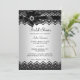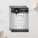 Invitation de mariage argent et noir. Joli nœud en soie noire et design de dentelle vintage. Veuillez noter que toutes les images sont plates !