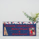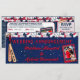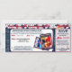 Invitation de mariage sur billet de baseball personnalisé HOWARD - Une invitation de mariage sur billet personnalisée pour un mariage sur le thème du baseball sur le marbre. Le recto du billet commence par un fond bleu uni saupoudré de paillettes bleues et de points de confettis rouges, blancs et bleus. Des battes de baseball personnalisées sont placées à gauche. Une carte de baseball personnalisée avec la photo du couple est placée à droite. Des balles de baseball rouges, blanches et bleues bordent le haut. Un texte en verre rouge indique : Annonce de mariage avec le nom du couple. Le verso du billet a le même fond bleu et la même décoration de baseball (sans les paillettes et les points de confettis). La référence personnalisée est sur la gauche avec la date de mariage du couple. Toutes les informations importantes comme le lieu, l'heure, l'endroit, etc. sont au centre, ainsi que deux cartes de baseball personnalisées du couple. Le talon de réponse est situé à droite. Les invités découperont cette partie et la renverront pour indiquer le nombre d'adultes et d'enfants présents. Une petite batte de baseball en bois est posée en haut à gauche. Un texte en verre décoratif indique la date de mariage du couple en haut. Une autre invitation est disponible pour les invités qui se rendent uniquement à la réception. Veuillez vérifier toutes les informations qui ont été personnalisées pour vous afin de vous assurer que tout est exact. *Une partie de cette invitation a été créée en utilisant des scripts PSP achetés et sous licence