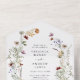 Invitation de mariage tout-en-un fleur sauvage. Cet élégant et élégant Boho All in One Wedding Invite présente un magnifique papillon aquarelle peint à la main et des fleurs sauvages disposés dans un joli bouquet. Recherchez les éléments correspondants dans la collection de Mariages de Fleur sauvage Boho Blanc.