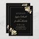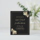 Budget Tout en un or Eucalyptus Élégant Faire-part de mariage Noir... Notre faire-part de mariage botanique "All in One", abordable, est dotée d'un cadre de texte doré avec des branches d'eucalyptus en faux or bordant votre texte d'invitation sur un élégant arrière - plan noir. Le verso de cette invitation unique contient tous les détails que vous verriez habituellement sur des cartes séparées dans le paquet mariage. Cette faire-part de mariage de style moderne a été conçue pour être à la fois élégante et économique... sans parler des économies de temps. Tous les exemples de texte peuvent être facilement révisés avec vos propres informations sur le modèle de personnalisation.