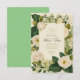 Cette faire-part de mariage d'inspiration vintage présente un design intemporel orné de fleurs blanches douces et d'un feuillage verdoyant. L'agencement floral délicat évoque un romantisme classique, tandis que la palette de couleurs tamisées apporte une touche nostalgique. Le mélange d'esthétique vintage et d'éléments botaniques frais crée un look sophistiqué et élégant, parfait pour les couples qui apprécient le charme de l'ancien. L'arrière - plan subtil et les détails complexes de l'invitation en font un endroit idéal pour les mariages rustiques, de jardin ou de nature. Personnalisable pour inclure les noms du couple, la date et le lieu du mariage, cette invitation réunit tradition et beauté naturelle dans un design gracieux.