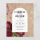 Des roses rouges assez profondes sont présentes sur ce faire-part de mariage botanique vintage sur le thème de l'arc.Il y a une variété de types de cartes et de papier pour tous les budgets, y compris les cartons traditionnels 5x7 et papier de prospectus (le prix le plus bas). Pour les visualiser tous, reportez-vous à la section "disponible sur - tous les produits" à la base de la section "à propos de ce design".