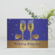 Cette invitation a un thème western qui peut être utilisé pour une annonce de réception de mariage ou un événement similaire. Elle comporte des verres à champagne avec des éperons sur un fond bleu avec des étoiles dorées.