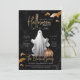 Élevez votre soirée d'Halloween à un tout autre niveau de sophistication avec notre modèle de carte d'invitation élégante pour une fête d'Halloween. Avec un fantôme blanc transparent et une citrouille de ton cuivre brun mat et des chauves-souris sinistres, sur un fond de marbre noir, cette invitation donnera le ton parfait pour votre soirée effrayante. Créez une invitation personnalisée et terrifiante pour votre fête d'Halloween !