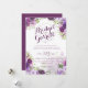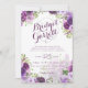 Magnifique bouquet de fleurs aquarelles violettes avec monogramme du département des pompiers et texte élégant en écriture formelle. Invitation de mariage inspirée des pompiers, avec un beau style classique.
