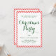 Une invitation simple et moderne à la fête de Noël. Le design comporte une bordure rayée rouge et blanc sucre de canne et du texte vert foncé sur un arrière - plan blanc. Ce serait parfait pour une fête de Noël ou tout autre événement festif.