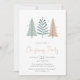 Invitation vos invités dans le style avec cette invitation à la fête de Noël chic et minimaliste avec un trio d'arbres de vacances d'inspiration scandinave moderne dans des tons doux vert pastel, roux et terreux. Le design épuré et les détails festifs subtils créent une atmosphère chaleureuse et contemporaine, parfaite pour des réunions de vacances confortables, des dîners saisonniers élégants ou des célébrations de Noël modernes. Entièrement personnalisable avec les détails de votre fête pour le rendre unique.