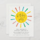 Une invitation à la fête anniversaire de enfant amusante et économique avec le soleil arc-en-ciel et script moderne. Cliquez sur le bouton Modifier pour customiser cette conception avec vos détails.
