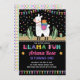 Invitation vibrante d'anniversaire de thème de lama/alpaga pour tous les âges !