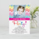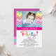Cet adorable, coloré, invitation de photo de style de chevron d'arc-en-ciel est parfait pour la fête d'anniversaire de thème de l'arc-en-ciel de votre enfant ou pour n'importe quelle partie ou événement lumineuse et colorée.