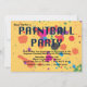 Recrutez votre équipe d'amis pour une partie de paintball qu'ils sont sûrs d'apprécier avec cette conception colorée. L'arrière - plan jaune ensoleillé avec les lignes diagonales minuscules a des éclaboussures de peinture rouge, orange, bleue, pourpre et verte - le plaisir d'un ado !