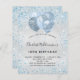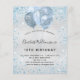 Pour un élégant 18ème anniversaire (ou tout âge). Un arrière - plan métallique à l'aspect faux argenté. Décoré avec de la poussière et des ballons de faux parties scintillant bleus. Personnalisez et ajoutez un nom, un âge et des détails de la fête. Le nom est écrit avec un script de style manuscrit