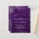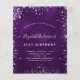 Une invitation moderne, élégante et glamour pour une fête d'anniversaire de 21e (ou tout âge). Un arrière - plan de couleur violet foncé avec de la poussière de parties scintillant en faux argent. La couleur violette est inégale. Le nom est écrit avec un script de style moderne écrit à la main. Personnalisez et ajoutez les détails de votre fête.