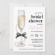 Élégante invitation à la douche nuptiale "Pearls and Prosecco", avec arc noir, verre de champagne et accents de perles chic. Idéal pour un brunch avec douche nuptiale.