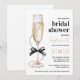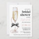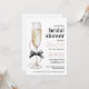 Élégante invitation à la douche nuptiale "Pearls and Prosecco", avec arc noir, verre de champagne et accents de perles chic. Idéal pour un brunch avec douche nuptiale.