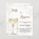 Une invitation moderne, élégante et glamour pour une Fête des mariées Pearls and Prosecco. Un arrière - plan blanc avec des bulles, un verre avec des bulles et des perles. Le nom est écrit avec un script de style moderne écrit à la main. Personnalisez et ajoutez les détails de votre fête. 1 feuille = 1 invite imprimé bord à bord.