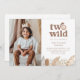 Cette invitation d'anniversaire présente un doux visage de lion aquarellé avec la phrase "deux sauvages", accentué par des feuilles de jungle de ton neutre le long du bas. Vous pouvez également ajouter votre propre photo du garçon ou de la fille qui fête son anniversaire. Parfait pour une célébration de deuxième anniversaire sur le thème du safari !