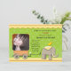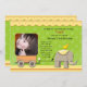 Une conception unisexe adorable comportant un éléphant tirant un chariot avec la photo de votre enfant dans elle. Le vert, arrière - plan de point de polka a tente jaune/orange, crantée.