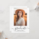 Célébrez l'exploit de votre diplômé avec cette invitation photo de diplôme de 2023 script moderne et élégant. L'invitation comprend un script de calligraphie moderne et magnifique ainsi qu'une photo de votre choix. Cette invitation est parfaite pour les diplômes du secondaire et du collège, et peut être customisée pour s'adapter à votre style unique. Faites savoir à vos proches que vous organisez une grande fête qu'ils ne voudront pas manquer avec cette magnifique invitation !