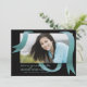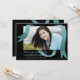 Une invitation moderne avec un ruban bleu turquoise accroché au-dessus de votre photo préférée avec un arrière - plan noir.