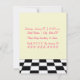 Une invitation de partie de potluck comportant une illustration d'un pot rose de cuisine avec les poignées et le couvercle. Le pot se repose sur une surface noire et blanche et a la vapeur venir de dessous le couvercle. Personnalisez le texte sur l'avant et le dos. Le dos comporte l'image extérieure noire et blanche en bas.