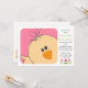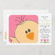 Une invitation lunatique comportant un plan rapproché d'un poussin de bébé. L'arrière - plan blanc est embelli avec des tulipes. Perfectionnez pour Pâques ou un anniversaire du ressort des enfants.