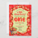 Cette invitation est pour une fête d'anniversaire à thème fraise d'un an !