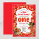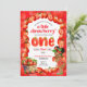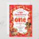 Cette invitation est pour une fête d'anniversaire à thème fraise d'un an !