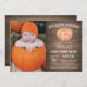 Rustique Citrouille premier anniversaire Invitation avec photo personnalisée. Arrière - plan de bois rustique. Invitation de la fête Anniversaire garçon ou fille. 1er 2e 3e 4e 6e 7e 8e 9e 10e, Tout âge. Pour plus de personnalisation, cliquez sur le bouton "Customiser" et utilisez notre outil de conception pour modifier ce modèle.