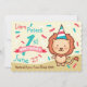 Célébrez le premier anniversaire d'un enfant avec cette joyeuse carte d'invitation. Customisez le nom, l'adresse et chaque détail. Le design comprend un lion animé portant un casquette d'anniversaire coloré, entouré de robes joyeuses et d'un éventail de couleurs éclatantes. Créez des souvenirs durables avec cette invitation délicieuse.