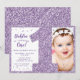Cette invitation de premier anniversaire violet comporte un faux brillant et est parfaite pour la fête d'anniversaire de votre petit ! Si vous cliquez pour personnaliser davantage, toutes les polices et les couleurs peuvent être personnalisées pour la zone de détails.