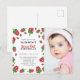 Carton d'invitation de première année de fraise mignonne et kawaii avec modèle de photo pour petites filles. Conçu et illustré avec amour par Kristine Lee Designs www.kristineleedesigns.com