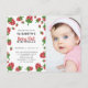 Carton d'invitation de première année de fraise mignonne et kawaii avec modèle de photo pour petites filles. Conçu et illustré avec amour par Kristine Lee Designs www.kristineleedesigns.com
