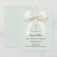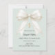 Un fond vert sauge pâle et doux, orné d'un grand ruban avec perles et une croix dorée. Personnalisez et ajoutez un nom et des détails.