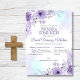 Invita a tus seres queridos a la Primera Comunión de tu hijo con esta elegante invitación. Adornada con lindas flores moradas en acuarela, esta invitación captura la esencia de una Primera Comunión Católica.