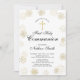 Célébrez votre jour spécial avec ce magnifique design d'invitation de première communion. Ce design présente un cadre et une croix dorés élégants. Vous pouvez personnaliser tout le texte et la couleur de fond.