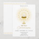 Invitation élégante de Première Sainte Communion avec calice, étoiles dorées et croix.