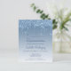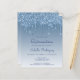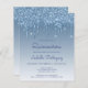 Cette invitation de quinceañera tendance présente une bordure de fausses paillettes bleues scintillantes et un fond ombré. Les mots "Quinceañera" et le nom de l'invité d'honneur apparaissent dans une écriture manuscrite bleue décontractée. Le même design de goutte de paillettes bleues apparaît au verso.
