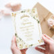 Invitation de Quinceañera blanche et dorée
