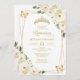 Carton d'invitation Quinceañera blanc ivoire et or, modèle modifiable de faire-part d'invitation pour une fête d'anniversaire des 15 ans avec Tiara Rose, Mis Quince Anos
